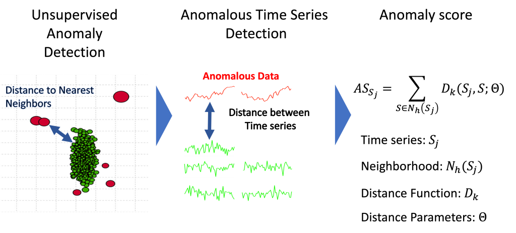 We can translate this general idea to multivariate time series by computing distances between time series and identifying the series that are distant with respect to the rest of the multivariate data.